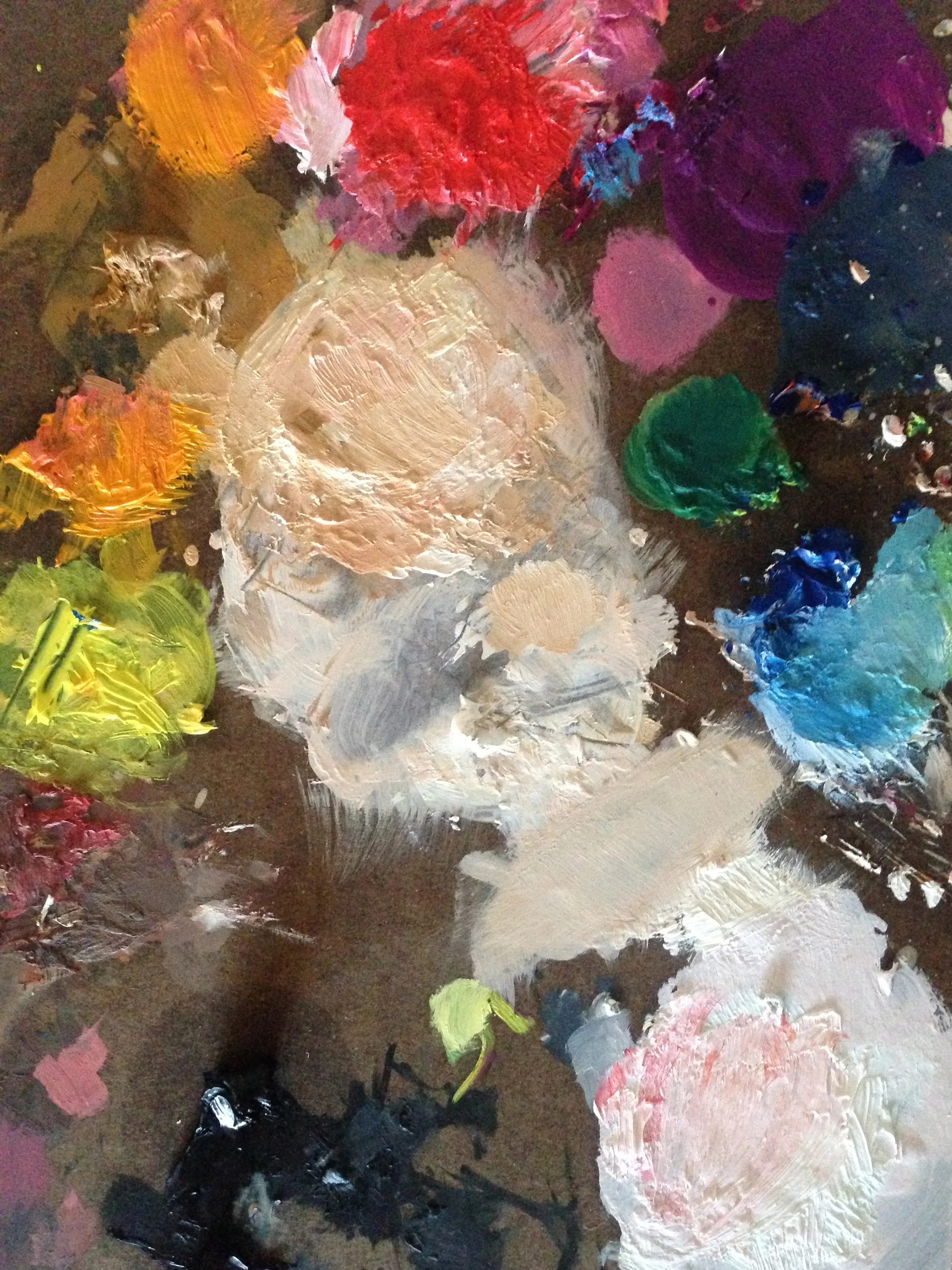 Creo que amo más mis paletas de colores que las obras terminadas. La manera en que los colores y las texturas forman un juego creativo, es interesante y cautivador.